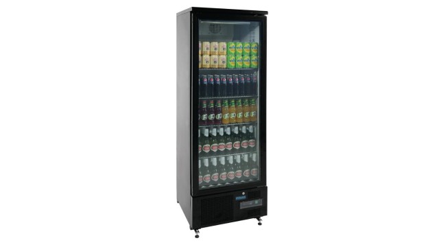 De stevige klapdeur is voorzien van dubbel glas voor verbeterde efficiëntie en een slot voor extra veiligheid, ook na sluitingstijd. De stevige constructie is eenvoudig schoon te maken en dankzij de rollers aan de achterzijde is de koeling eenvoudig te positioneren en te verplaatsen.