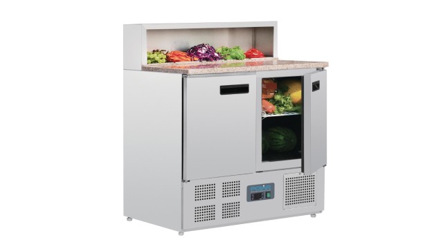 Met heavy-duty granieten werkblad maakt u pizzadeeg in een handomdraai dankzij het koelblijvende, niet-klevende materiaal. Intern biedt de koeling ruimte aan GN 1/1 bakken, zodat u producten en gerechten eenvoudig van het ene naar het andere apparaat kunt verplaatsen. Een saladette van topkwaliteit.
