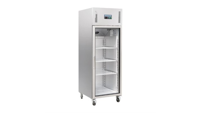 Betrouwbare en krachtige 600L koeling van Polar. De koeling biedt veel opslagruimte voor voedsel en is geschikt voor GN 2/1 bakken. Zeer stijlvol dankzij de glazen deur en eenvoudig te reinigen dankzij de robuuste RVS behuizing. De ventilator ondersteunde koeling en digitale controller zorgen dat de inhoud op precies de juiste temperatuur blijft.