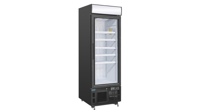 Zwarte glasdeur horeca vrieskast met lichtbak
