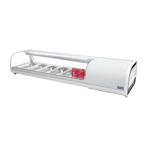 De opzetkoeling is ideaal voor cafés, delicatessenzaken, koffietentjes en meer, met een capaciteit van 6x GN 1/3 bakken om voedsel hygiënisch en koel te presenteren. Met fraai gebogen glas en zuinige LED-verlichting, waarmee deze tapas displaykoeling impulsverkopen van cake, sandwiches en tapas maximaliseert. GN bakken apart verkrijgbaar.