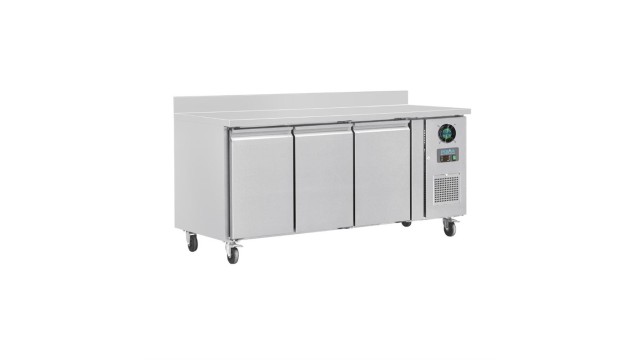 Polar 3-deurs werkbank met vriezer en achteropstand 417ltr.